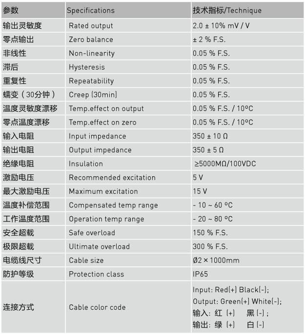 量程:5, 10, 20, 50, 100, 200,250,300,500,1000,2000N